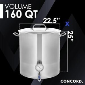The CONCORD Stainless Steel Home Brew Kettle is a high-capacity 160 QT (40 Gal) stock pot designed for home brewing, large-scale cooking, and professional culinary applications. Built with durable stainless steel and equipped with weldless fittings, this kettle combines functionality, reliability, and convenience for serious brewers and chefs.