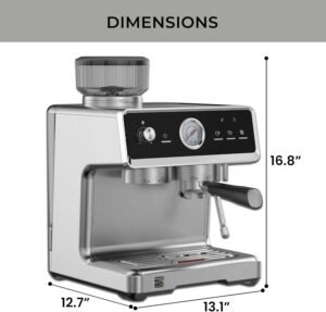 Constructed with sleek stainless steel, the Kenmore Espresso Machine is durable, stylish, and built to last. Its compact footprint fits comfortably on most kitchen counters, while its modern design enhances the aesthetic appeal of any kitchen.